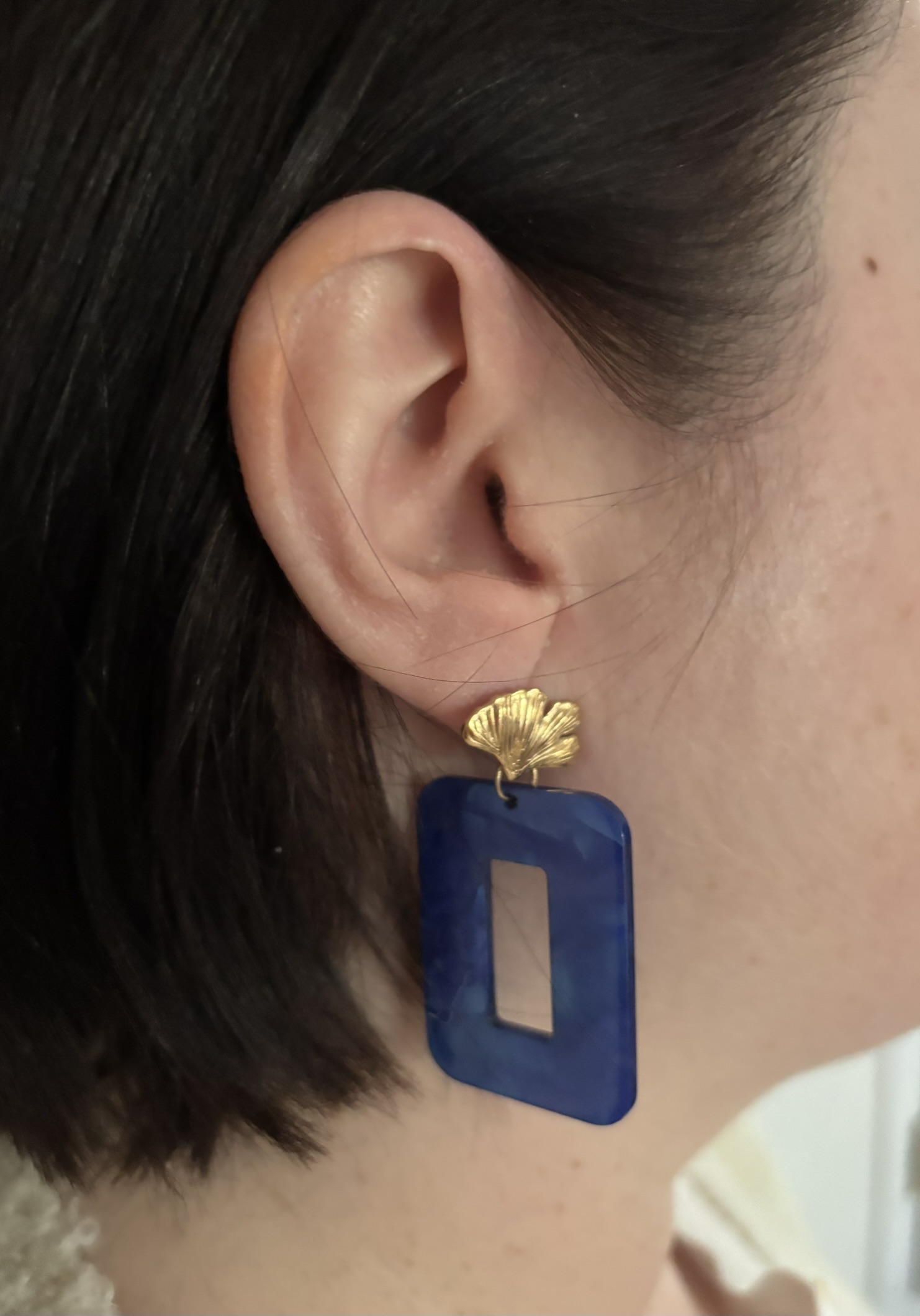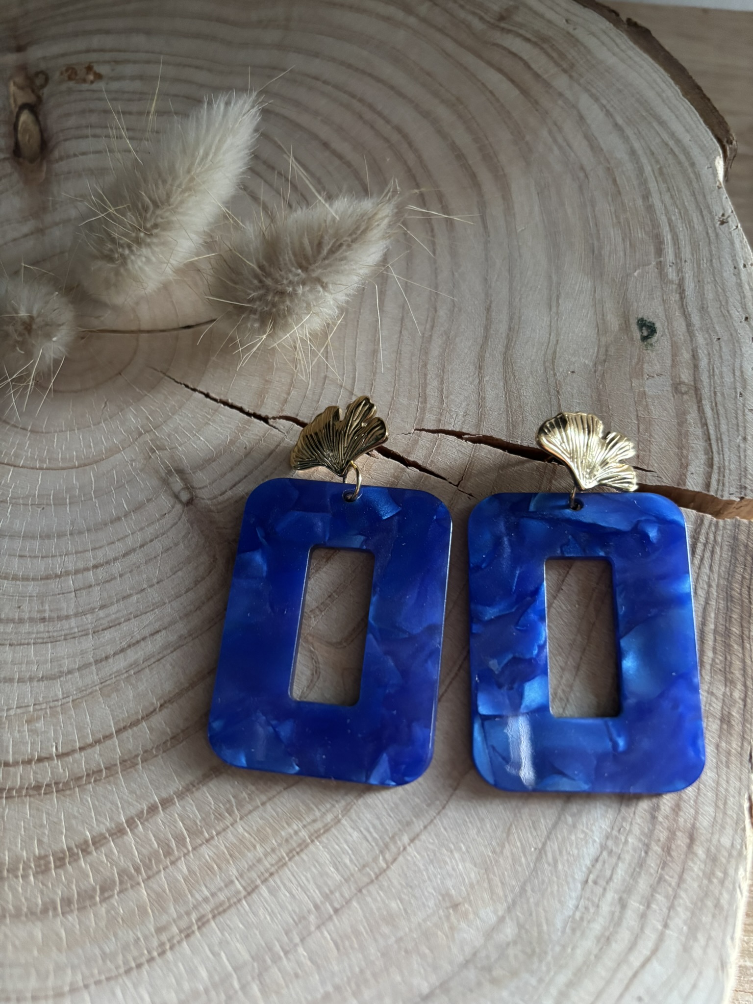 Pendentif rectangle évidé en acétate 40×30 mm bleu roi
