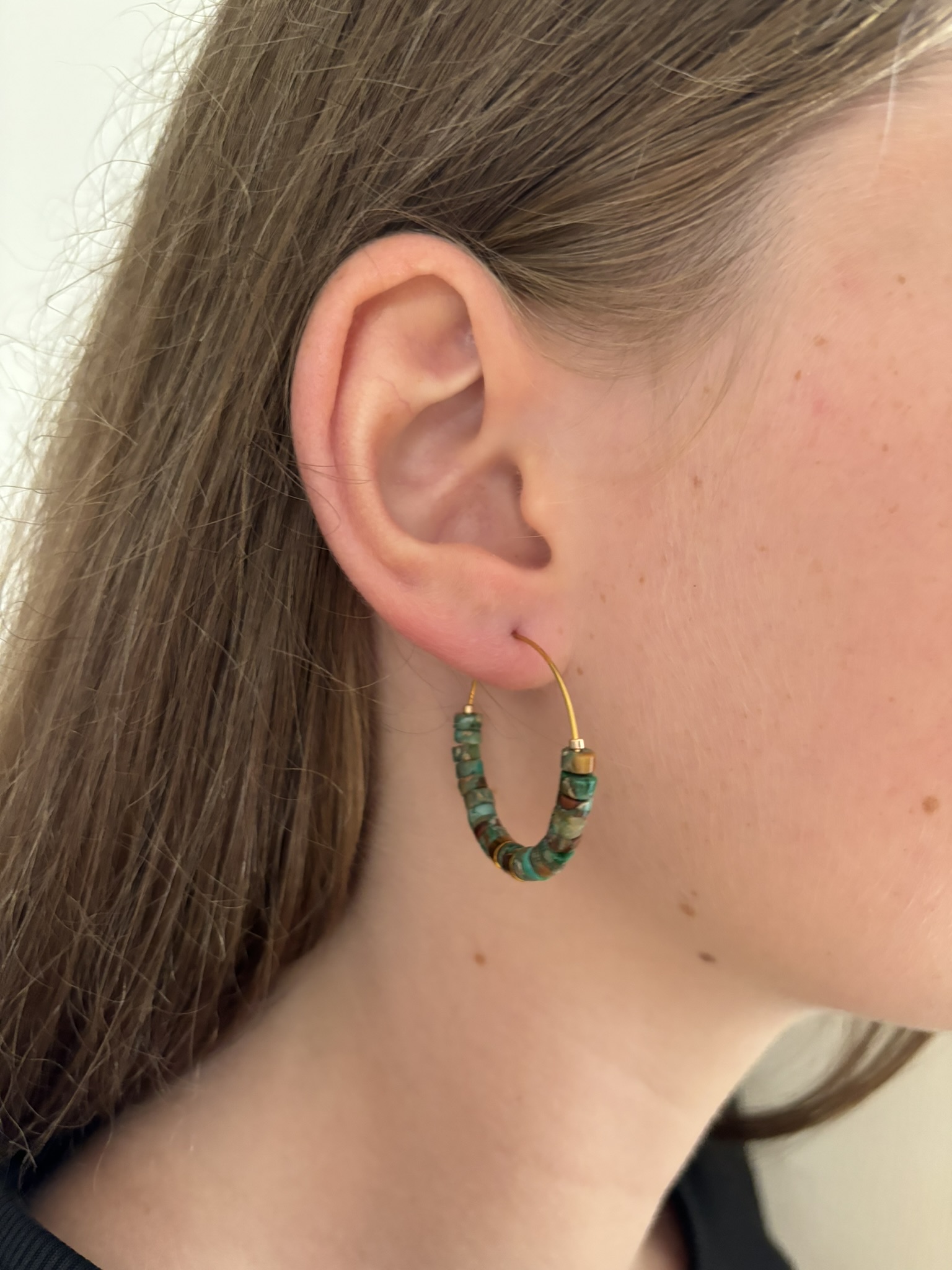 Ces boucles d’oreilles sont assorties aux bracelets Suzanne
